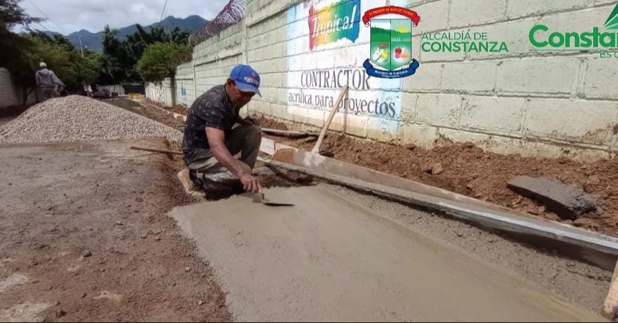 El Ayuntamiento del Municipio de Constanza, su alcalde Francisco Marte (Kiko) y el concejo de Regidores, dejaron iniciados los trabajos de construcción de aceras y contenes, en la entrada del Multiuso Deportivo de aquí.