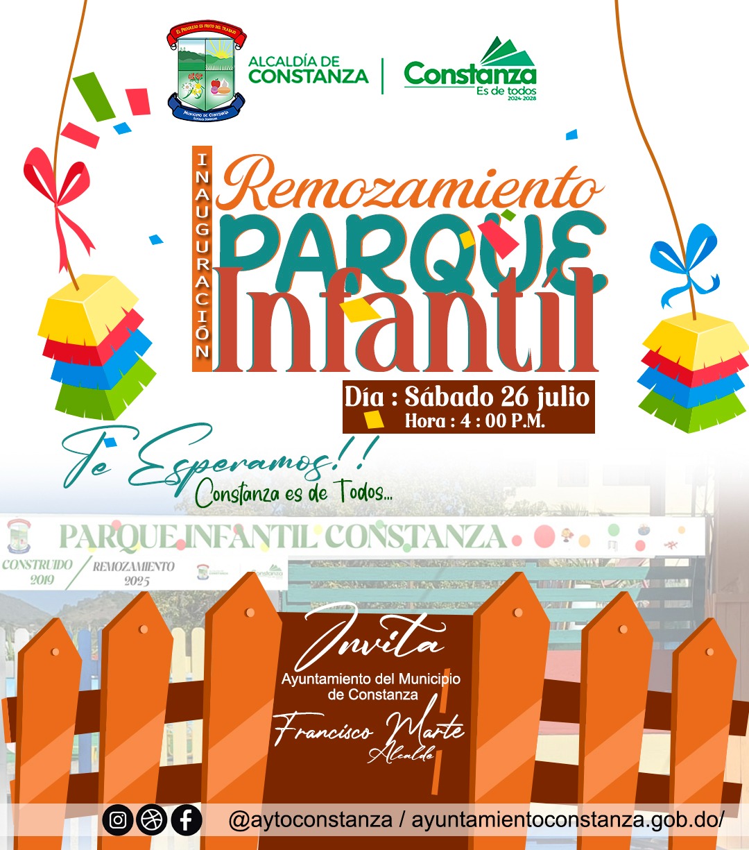 tienen el honor de invitarte a la entrega del remozamiento del Parque Infantil.