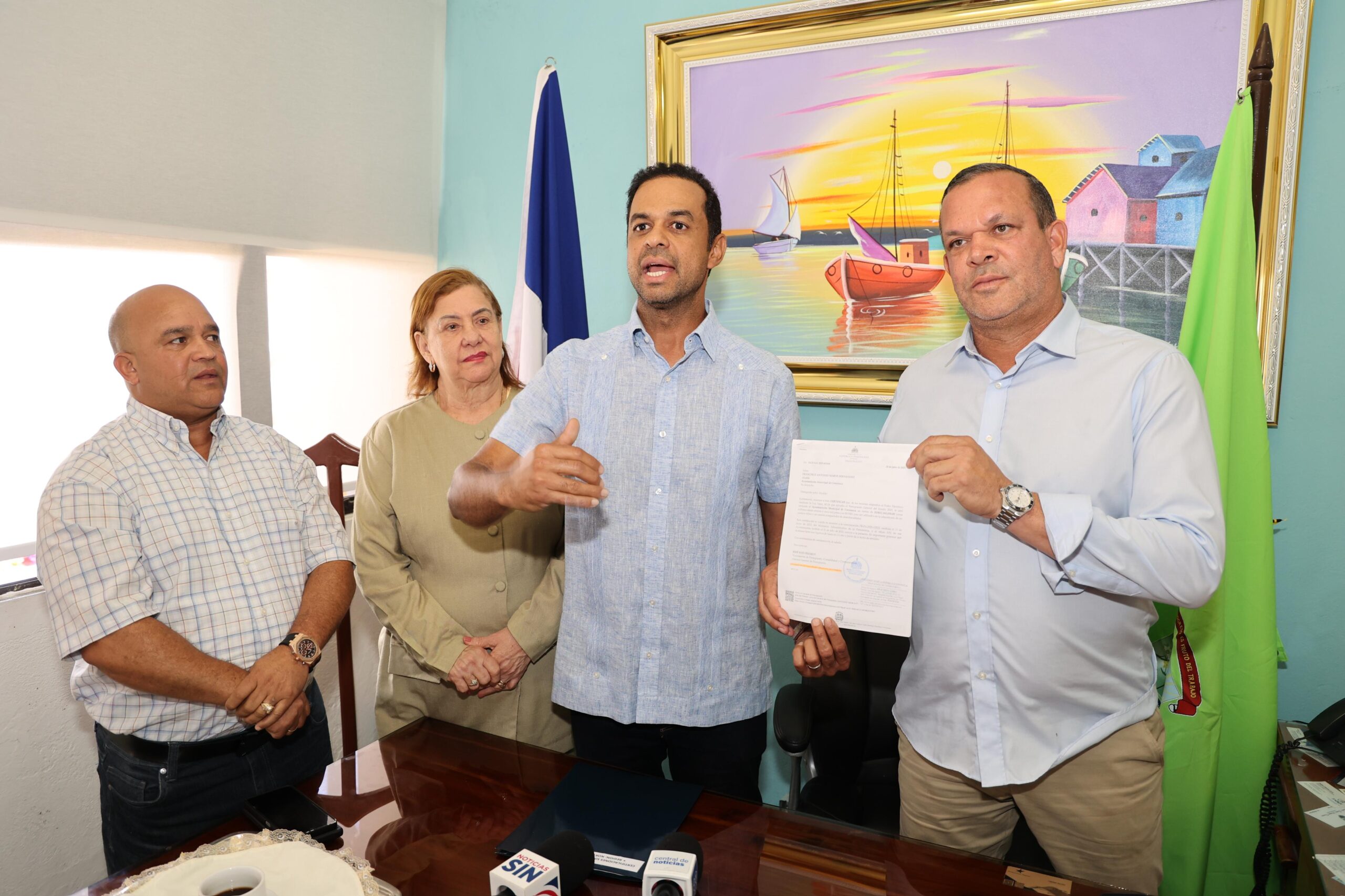 El cheque fue recibido por el alcalde municipal Francisco Marte, “Kiko” acompañado del cuerpo de regidores del Ayuntamiento, quienes valoraron la iniciativa como una muestra clara del compromiso del presidente con el desarrollo de Constanza.