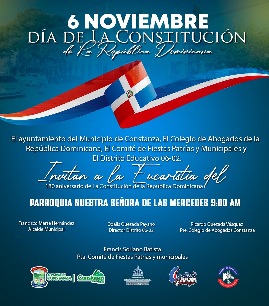 El ayuntamiento del Municipio de Constanza, El Colegio de Abogados de la República Dominicana, El Comité de Fiestas Patrias y Municipales y El Distrito Educativo 06-02.