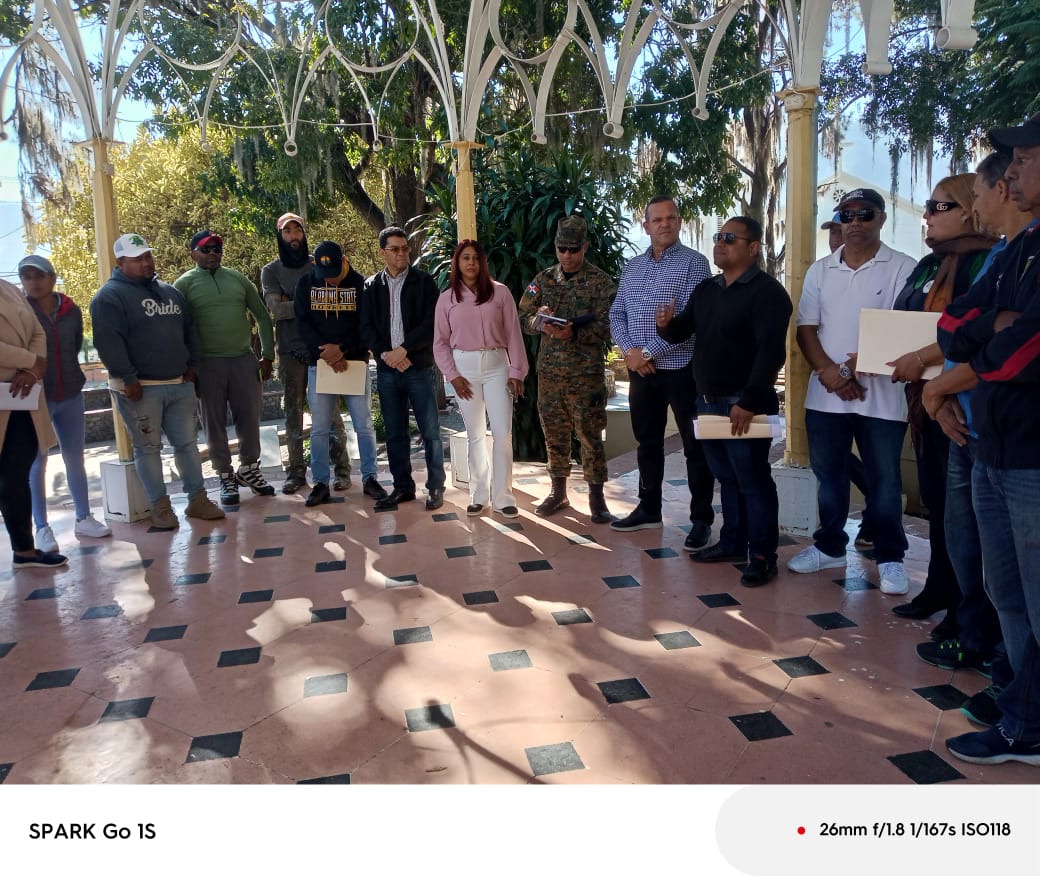 Alcalde Municipal y Concejo de Regidores se reúnen con autorización civiles y militares, así como con comerciantes de las periferias del Parque Municipal, para entregarles la resolución 01-2025 que prohíbe la venta de bebidas alcohólicas en botellas de vidrio durante la celebración del carnaval.