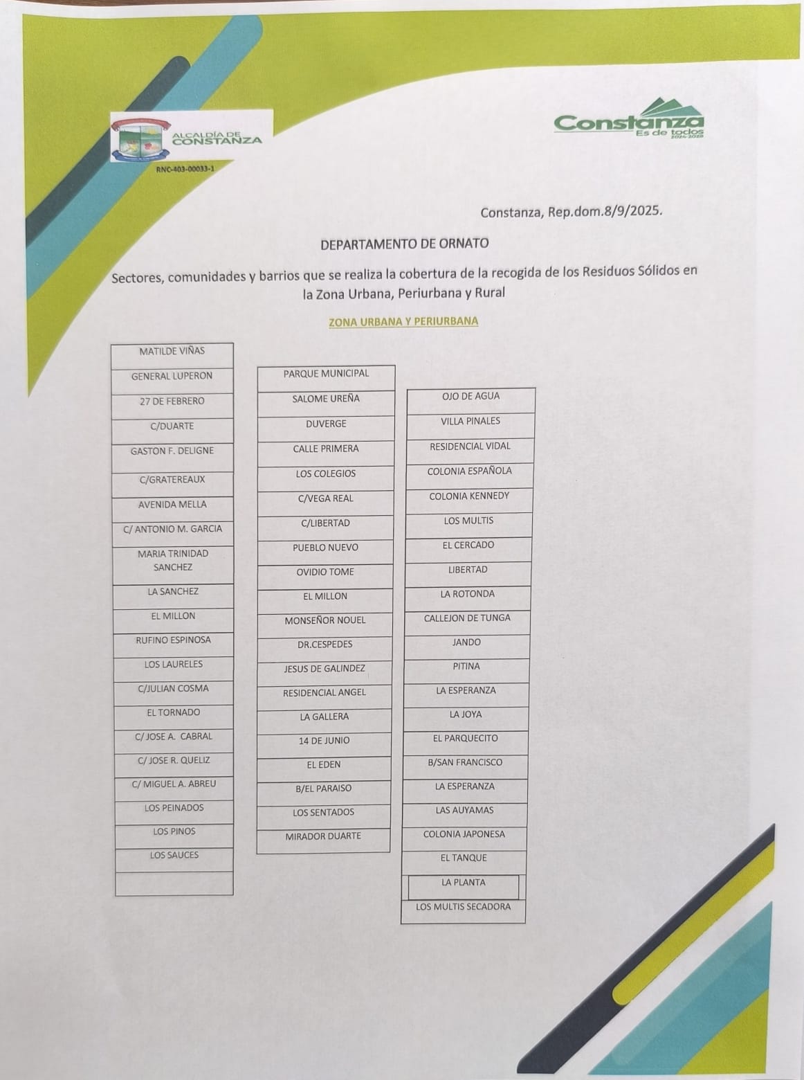 octubre 6, 2025 Rutas y Frecuencias de la recogida de desechos solidos. Mes de septiembre 2025 Comparte y Comenta